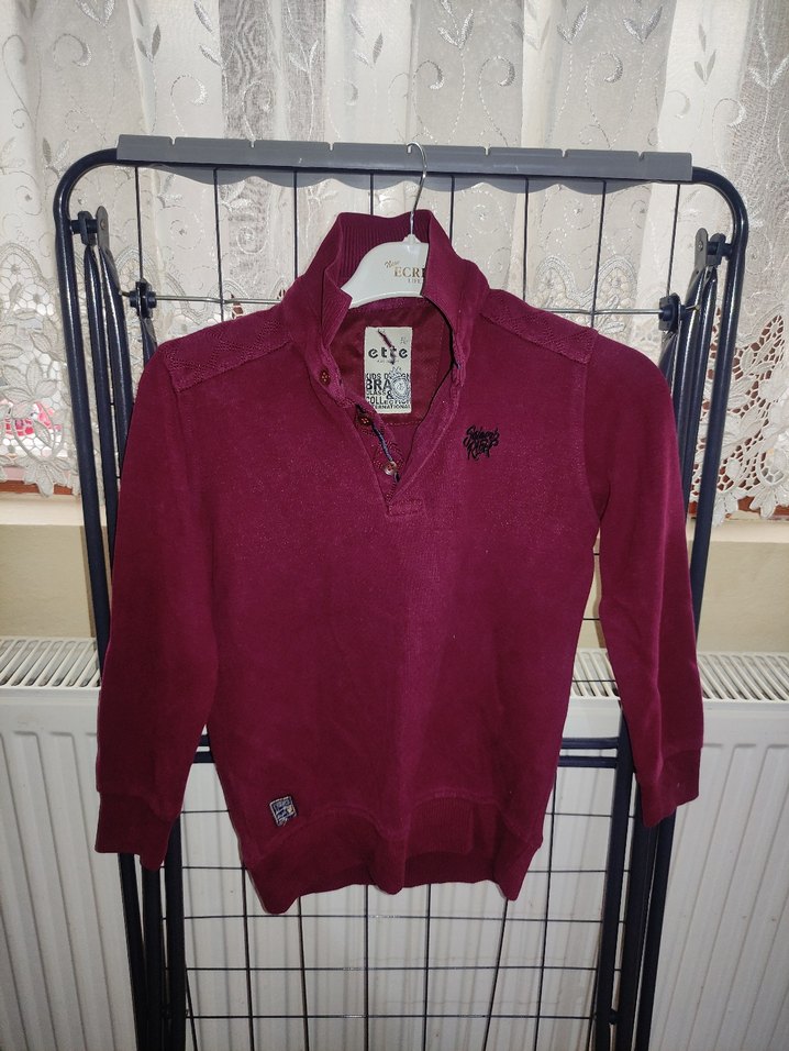 Bordo renkli, yüksek yakalı ve uzun kollu erkek çocuk kazak. Örgü ve yumuşak tüylü kumaştan, bol kesim rahat bir modeldir. Desensiz, trend sokak stiline uygun.
