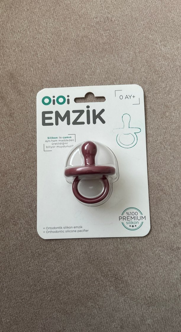 Bordo renk, %100 premium silikon malzemeden üretilmiş ortodontik emzik, 0 ay ve üzeri bebekler için uygundur.