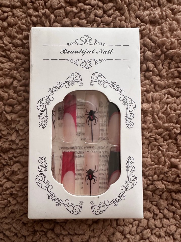 Bordo Örümcek Desenli Takma Tırnak