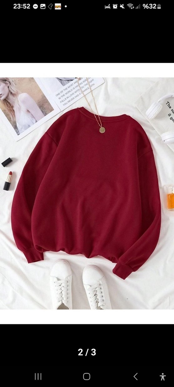 Bordo renkli, yuvarlak yaka ve uzun kollu bu oversize sweatshirt, yumuşak ve sıcak kumaştan üretilmiştir. Desensiz ve rahat kesimi ile günlük kullanıma uygundur.