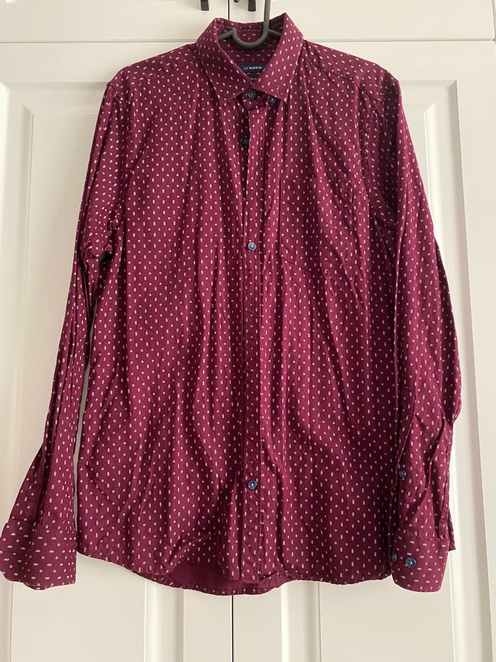 SLIM FIT M BEDEN Bordo renkli, uzun kollu, pamuklu erkek gömleği. Düğmeli, yakalı ve bol kesimdir. İnce nokta desenli, günlük ve ofis kullanımı için uygundur.