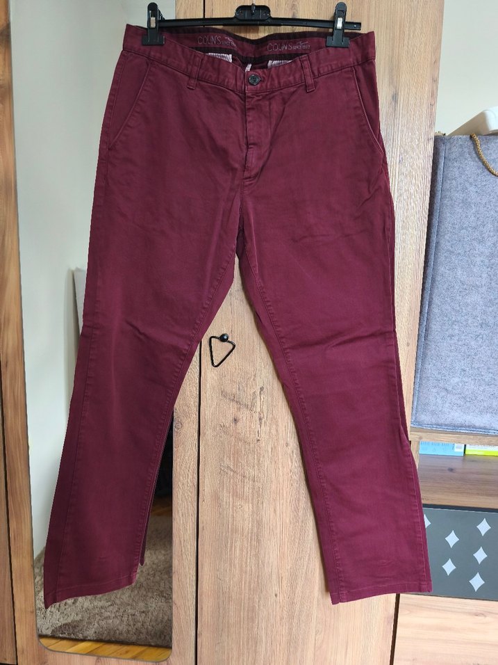 Bordo renkte pamuklu erkek pantolon, normal boy, düğmeli ve regular fit. Günlük kullanıma uygun normcore tarzda rahat bir parça.