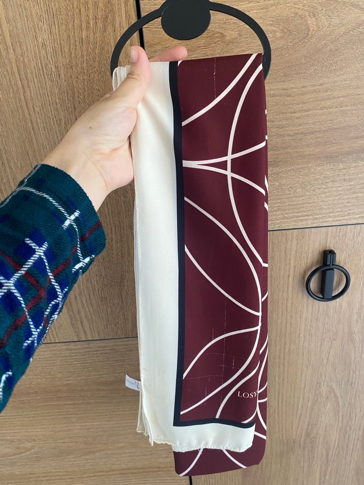 Parlak bordo renkte, beyaz çizgili baskılı ve 'LOSY' yazılı modern