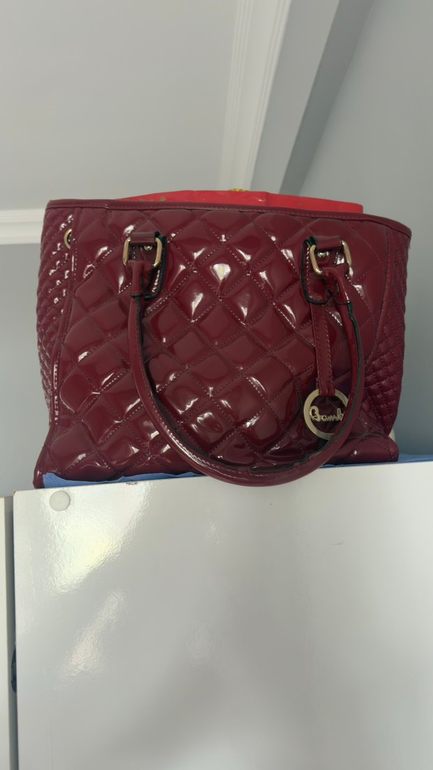 Bordo parlak deri malzemeden yapılmış, tokalı saplara sahip kadın çantası. Klasik ve çağdaş tasarımıyla günlük kullanıma uygun, Paris tarzı dokunuşlu. Sıfırdan farksız .