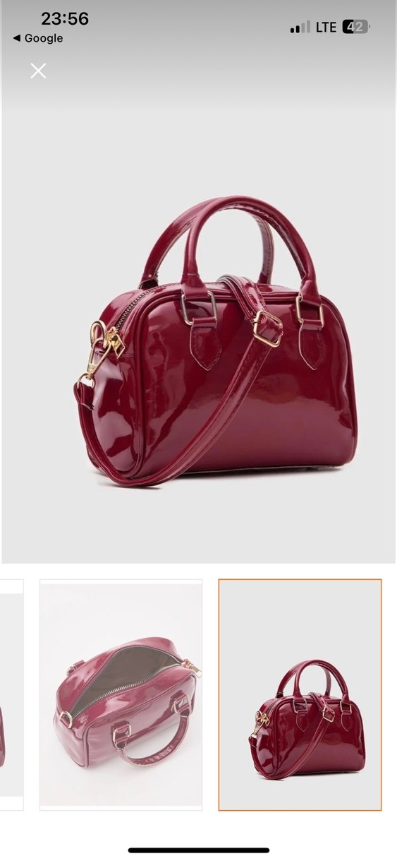 Bordo parlak deri kadın çanta, sağlam saplar ve çıkarılabilir omuz askısıyla günlük kullanıma uygun modern tasarıma sahiptir. ✨