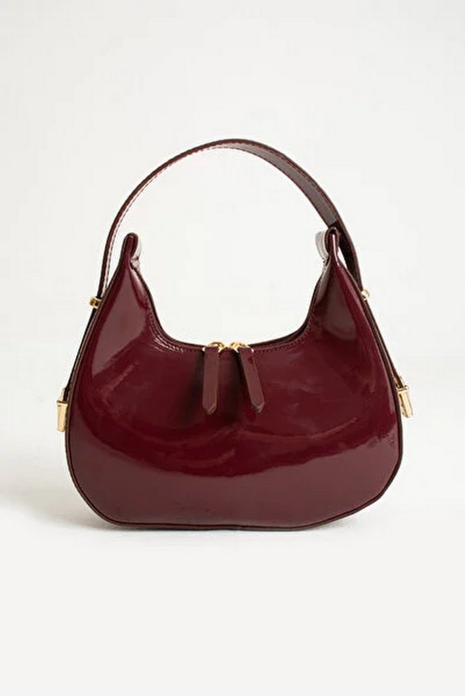 Bordo parlak deri ve tokalı tasarıma sahip kadın çantası, klasik zarafeti modern klasik stil ile birleştirir.