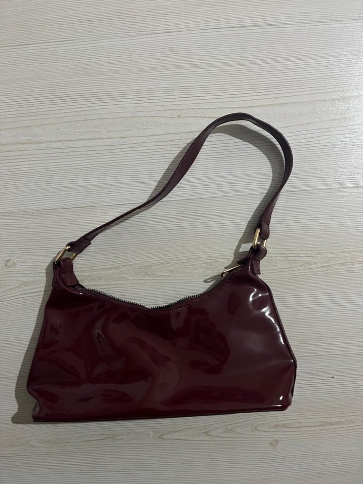 Bordo Parlak Deri Kadın Omuz Çantası