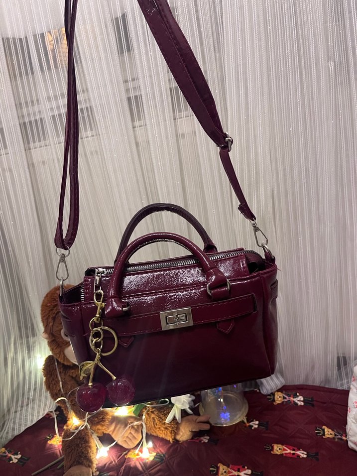Bordo Parlak Deri Kadın Omuz Çantası