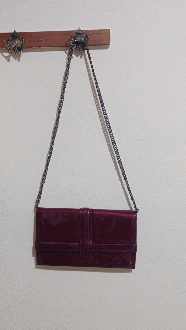 Bordo Parlak Deri Zincir Detaylı Kadın Çanta