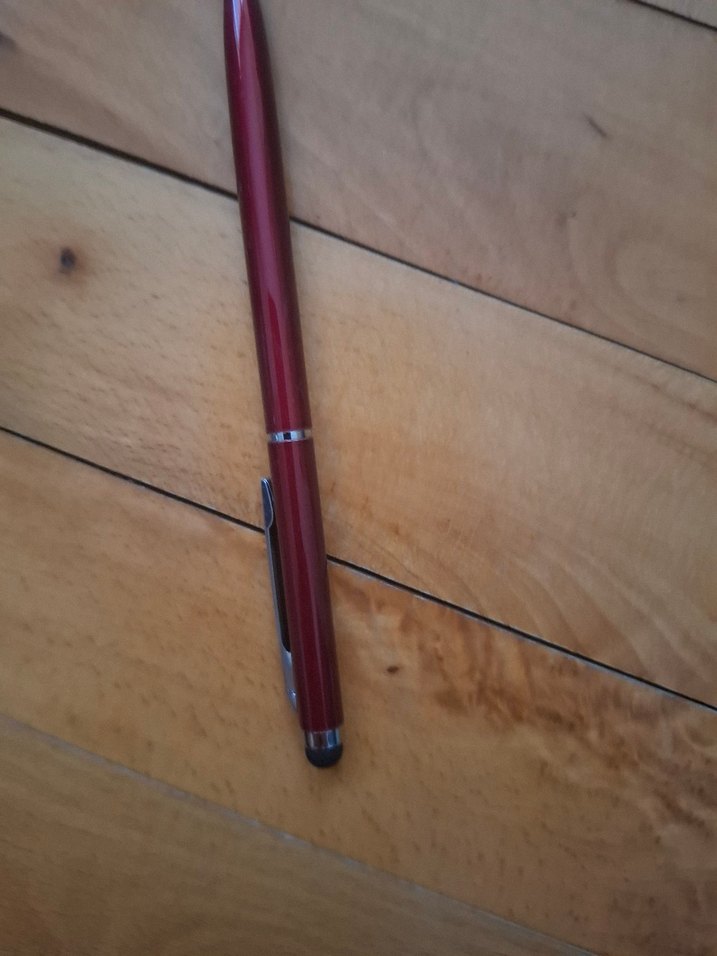Parlak bordo renkte, dokunmatik uçlu ve klipsli kalem. ️.