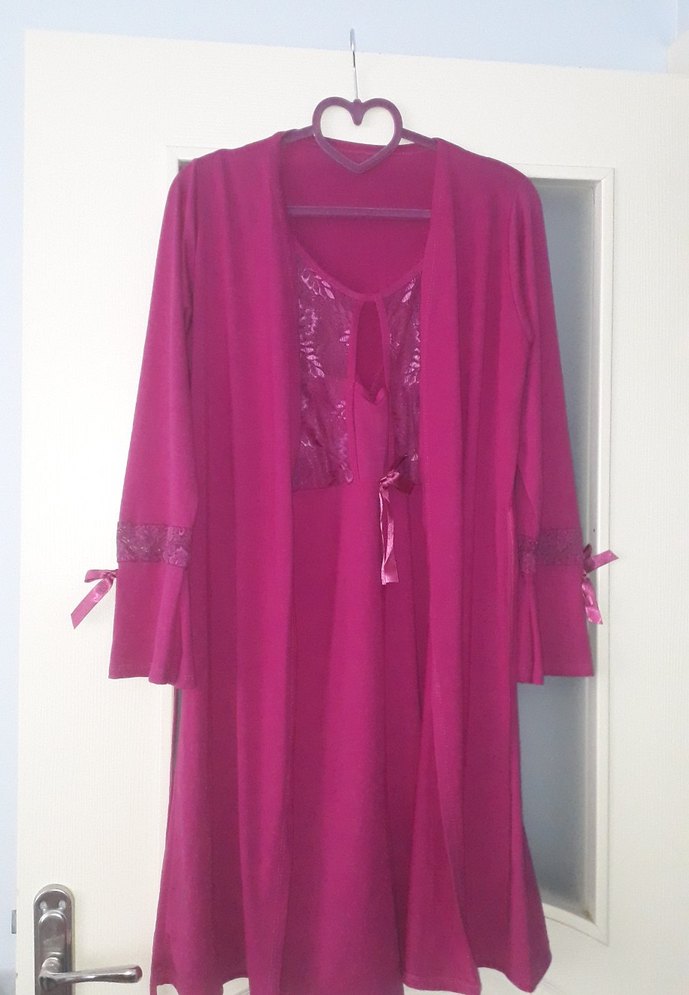 Bordo Parlak Kadın Uzun Kollu Salaş gecelik sabahlık takım