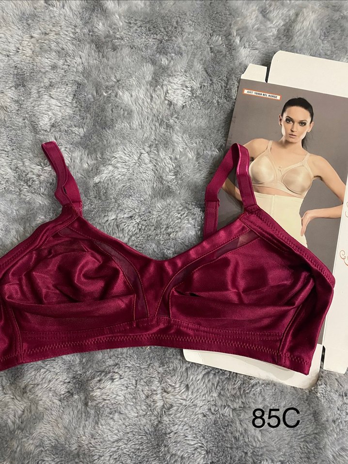 Bordo parlak görünüme sahip, 85C bedeninde rahat bir sütyen. Normal uzunlukta, sokak stiline uygun.