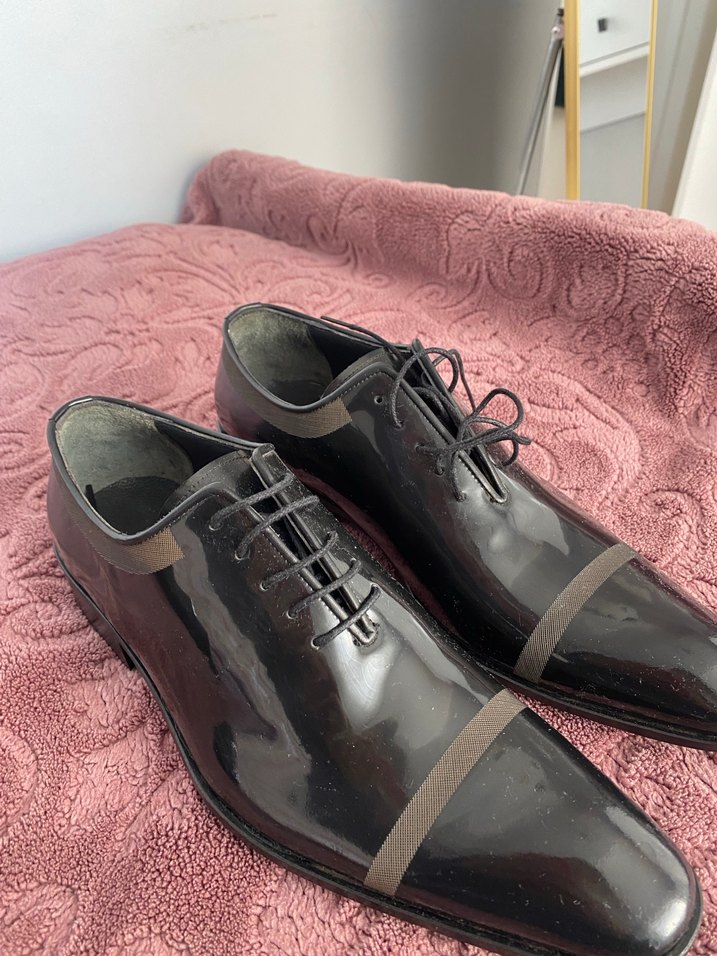 Bordo renkli, parlak yüzeyli ve bağcıklı modern klasik erkek ayakkabısı. Lastik tabanıyla ofis stiline uyum sağlar.