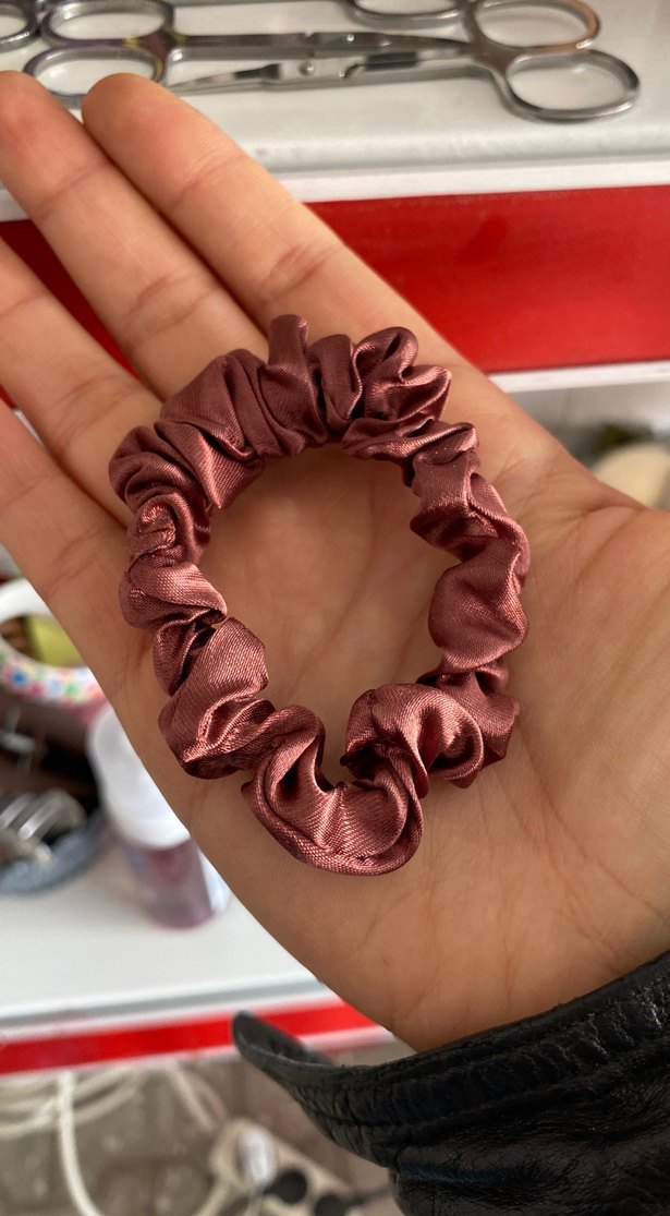 Bordo parlak saten malzemeden yapılmış elastik saç lastiği, bohem ve retro tarzlara uygun yumuşak dokulu saç aksesuarı.