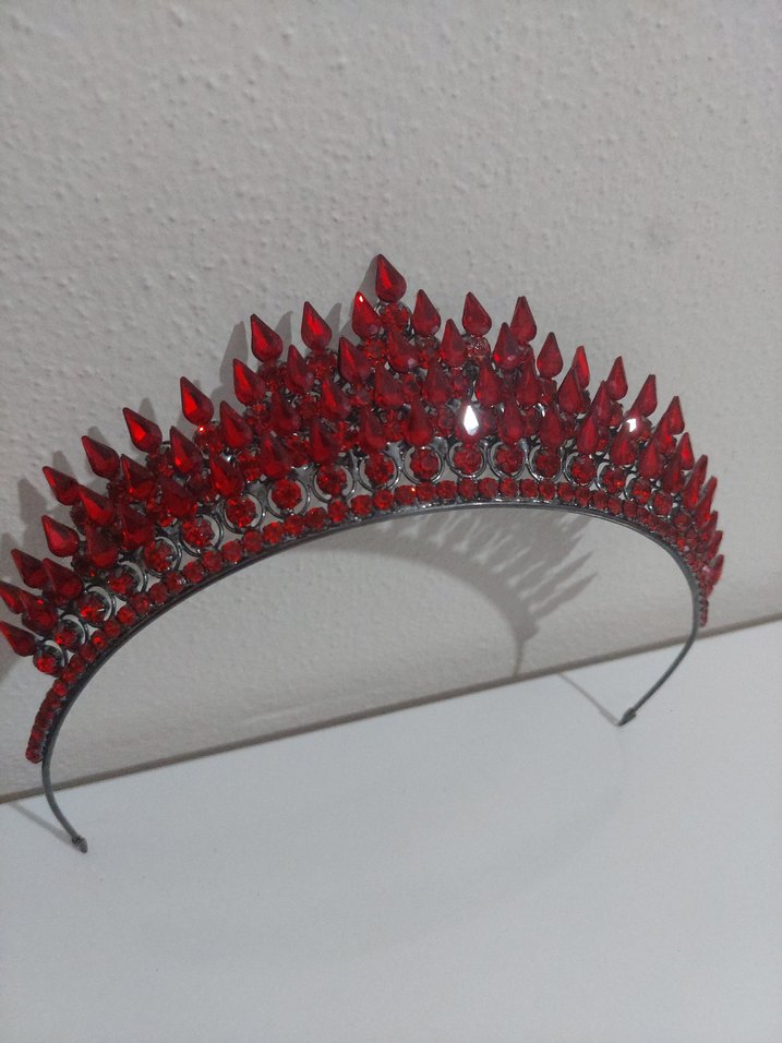 Gotik avant-garde tarzda, bordo taşlarla süslenmiş parlak taç, moda öncüleri için ideal.