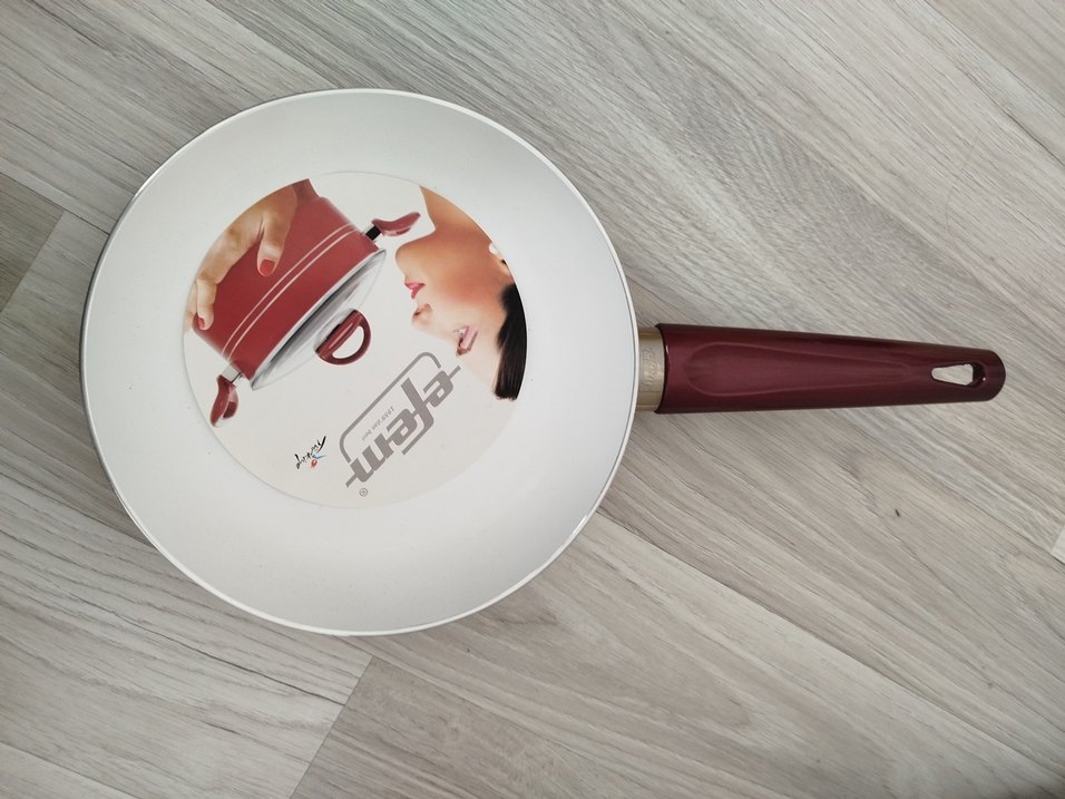 Bordo renkli, parlak yüzeye sahip ve kullanışlı saplı tava. ürün hiç kullanilmadi herhangi bir sorunu yok seramik yüzeyli 20 cm capinda