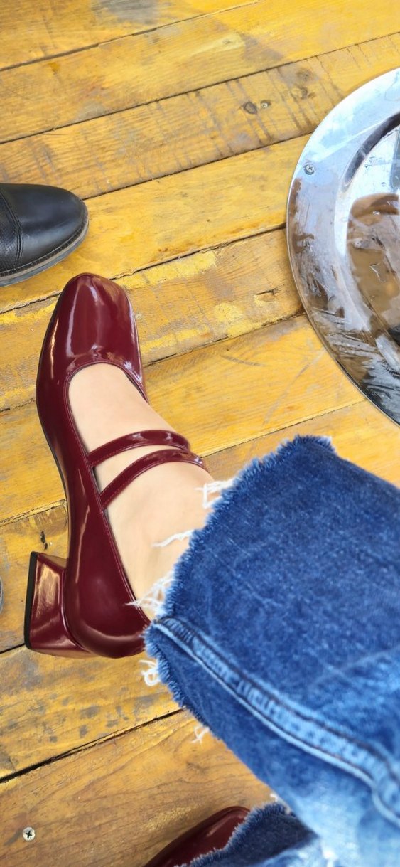 Bordo Parlak Tokalı Kadın Klasik Topuklu Ayakkabı