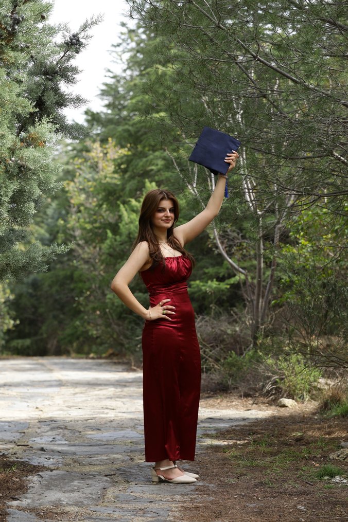 Bordo parlak kumaştan, straplez ve ince askılı, uzun ve vücuda oturan elbise, püskül detayıyla dikkat çeker. sadece mezuniyet çekimimde giydim tekliflere açığım.