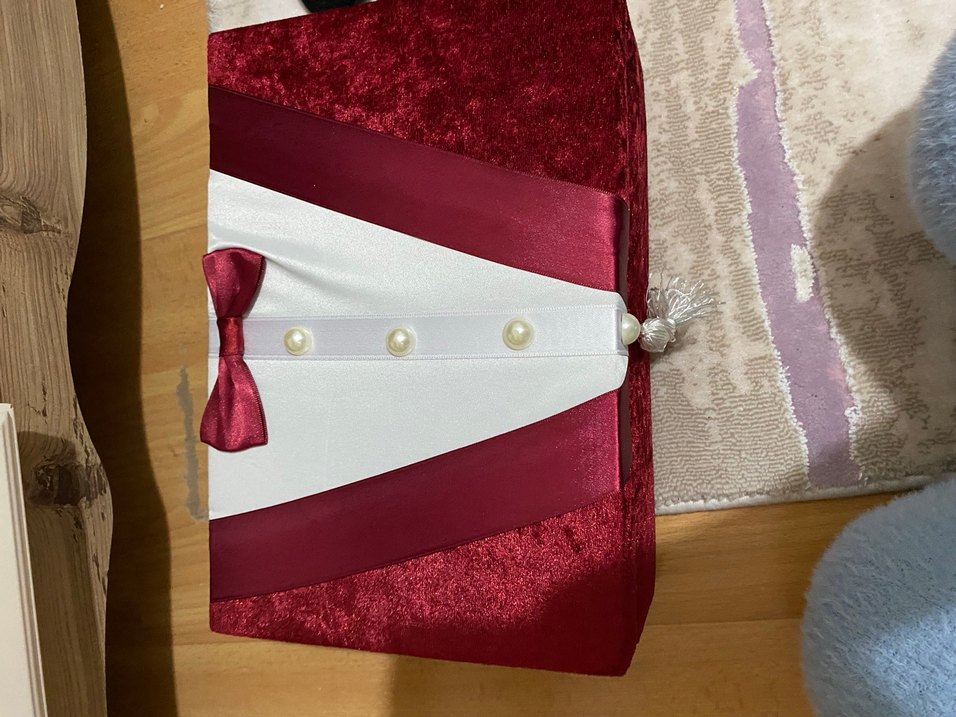 Bordo Parlak Uzun Kollu Papyonlu Smokin kutu