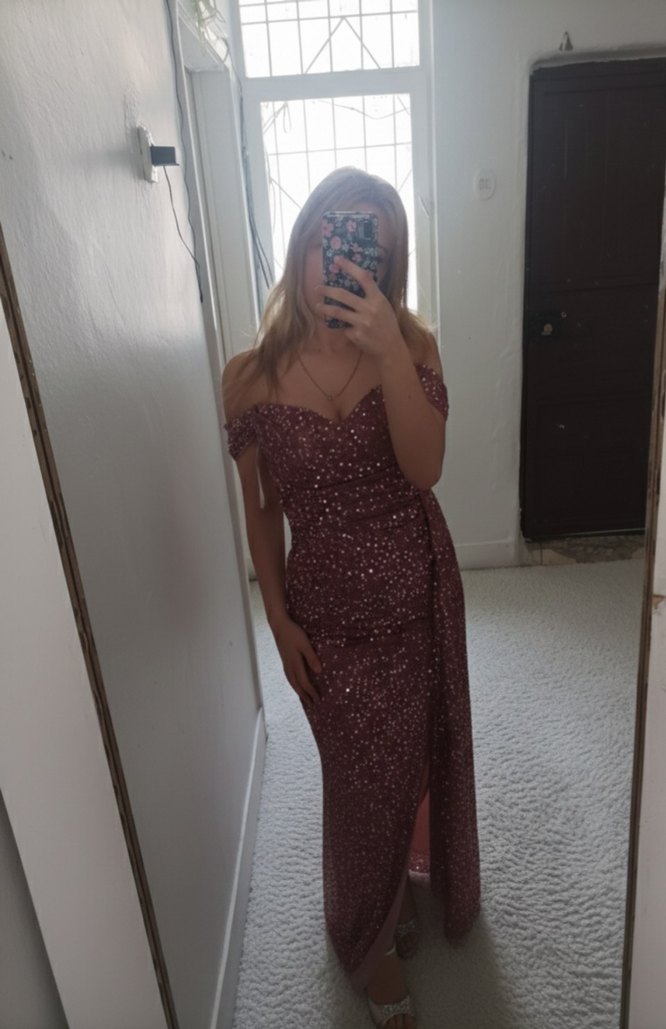 Bordo, parlak simli, uzun ve vücuda oturan straplez abiye elbise, cesur romantik akşamlar için ideal.