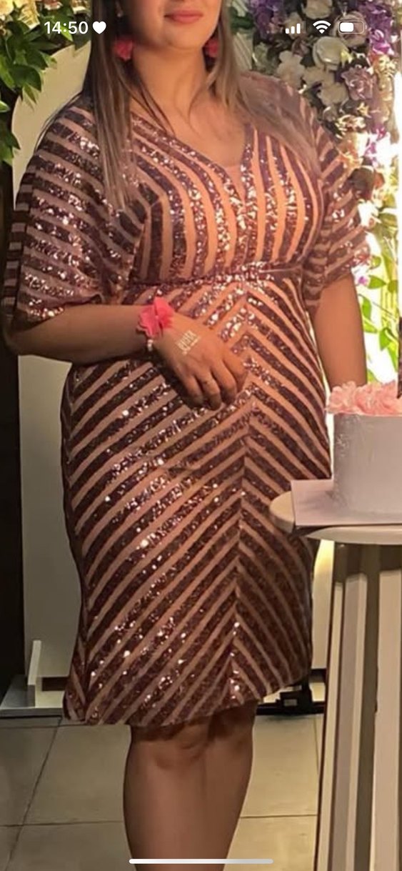 Bu bordo parlak uzun abiye elbise, V yaka ve drapeli tasarımıyla dikkat çeker. İnce askılı ve yılan desenlidir, partiler için uygundur. Her yeri payettir.sorunsuzdur Ölçüler fotoğraflar da mevcuttur