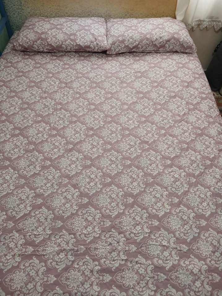 Pastel bordoda, baskılı desene sahip yumuşak dokulu yatak örtüsü, rahat bir uyku ortamı sağlar istenilen ölçüde dikilir ️marka TEMSİLİ dir