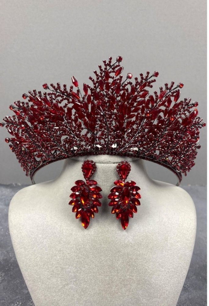 Bordo renkli kına tacım ve küpem ben çok severek taktım hiçbir problemı yok