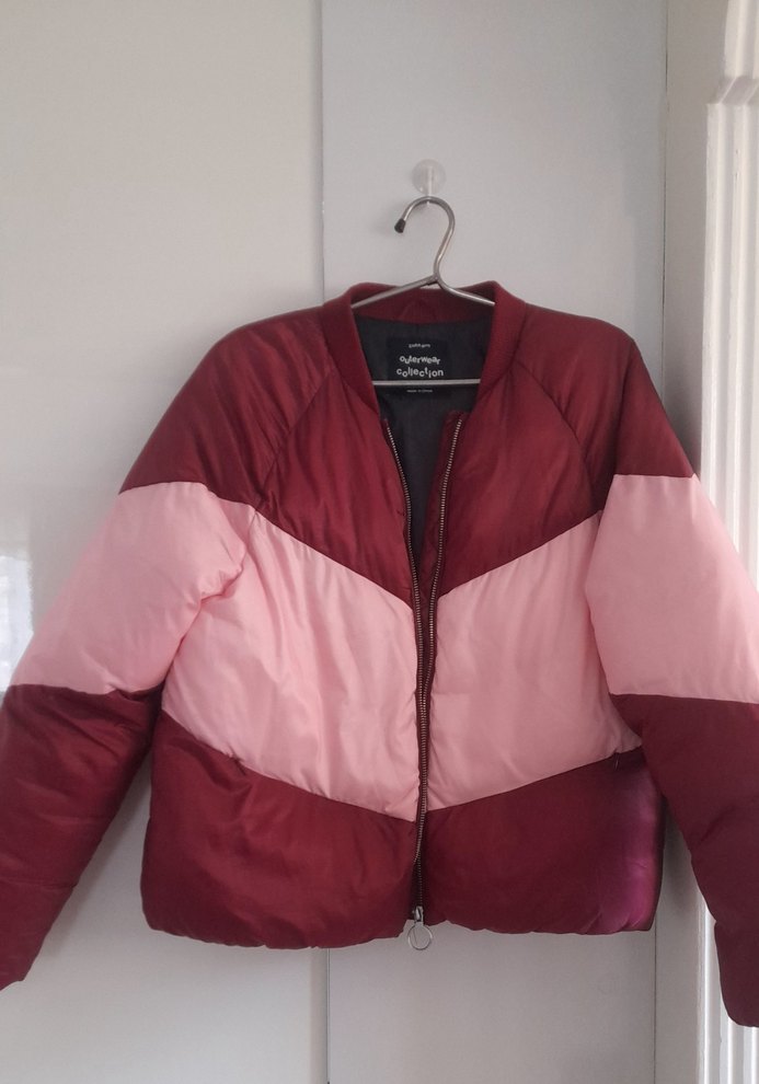 Bu fitted cocuk kış montu, yüksek yakalı ve fermuarlı ön yapıya sahiptir. Parlak sentetik kumaştan üretilmiş, bordo ve pembe renkleri sokak tarzında bir araya getirir. Uzun kollu ve midi boyda, günlük rahat kullanım için uygundur. ❄️