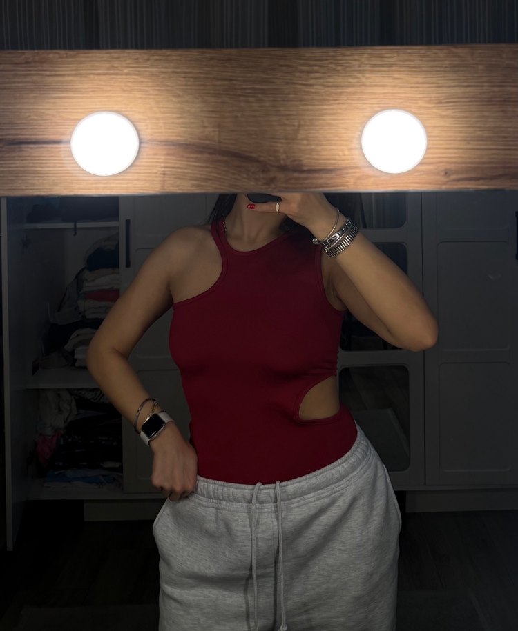 Bordo trendyol pencere detaylı bodysuit büyük geldiği için hiç giymedim.