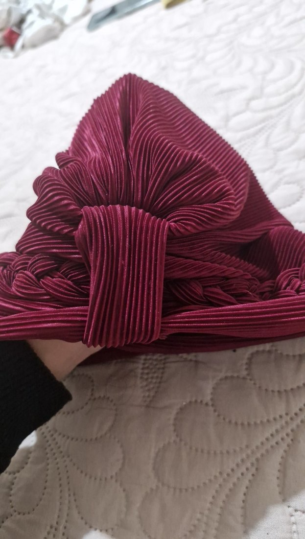 Yumuşak sentetik kumaştan, pileli detaylara sahip bordo kadın bone bohem ve Paris tarzını yansıtıyor.