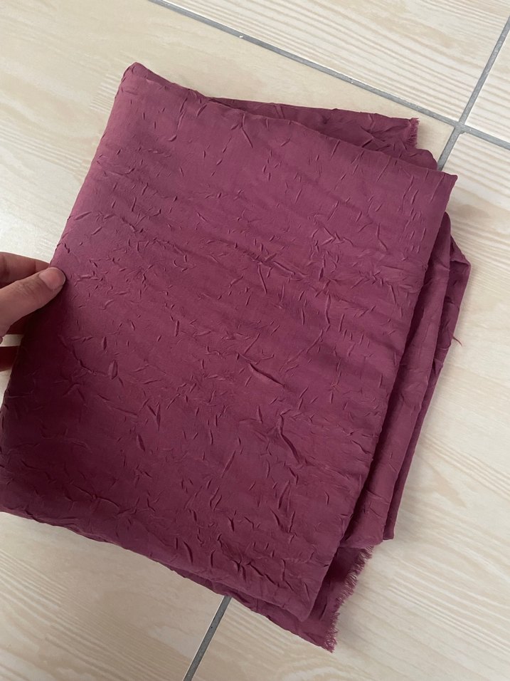 Bordo renkli keten kumaştan yapılmış, pileli dokusu olan kadın şalı, minimalist ve bohem tarzda, sade ve temel kombinlere uygun.