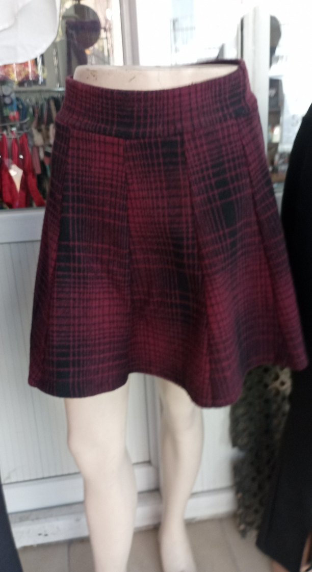 Bordo renkli, pileli ve salaş kesimli mini etek. Yumuşak sentetik kumaştan, rahat ve günlük kullanıma uygun.