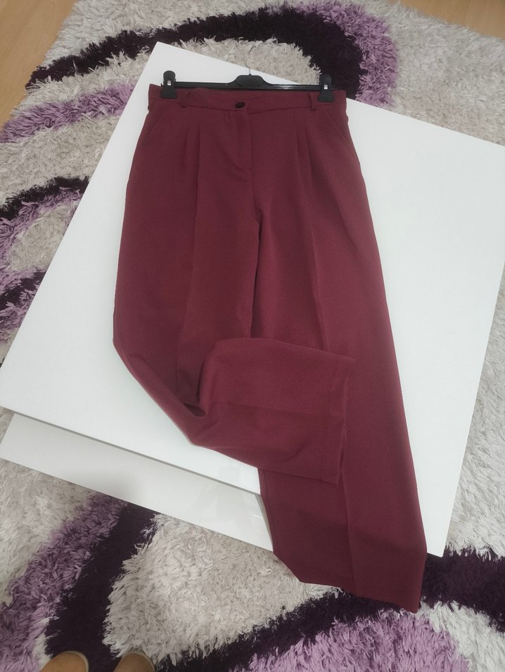 Bordo renk, kadın kumaş pantolon. krep kumaştan üretilmiş, uzun boyda ve desensiz. Ofis ve günlük şıklık için ideal. sıfır üründür 40 beden