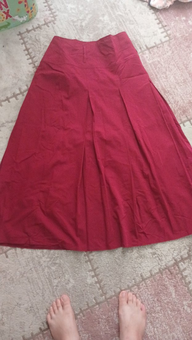 Bordo renkli, piliseli ve bol kesim uzun etek. Parlak sentetik kumaştan, minimalist bohem tarzıyla günlük kullanıma uygun.