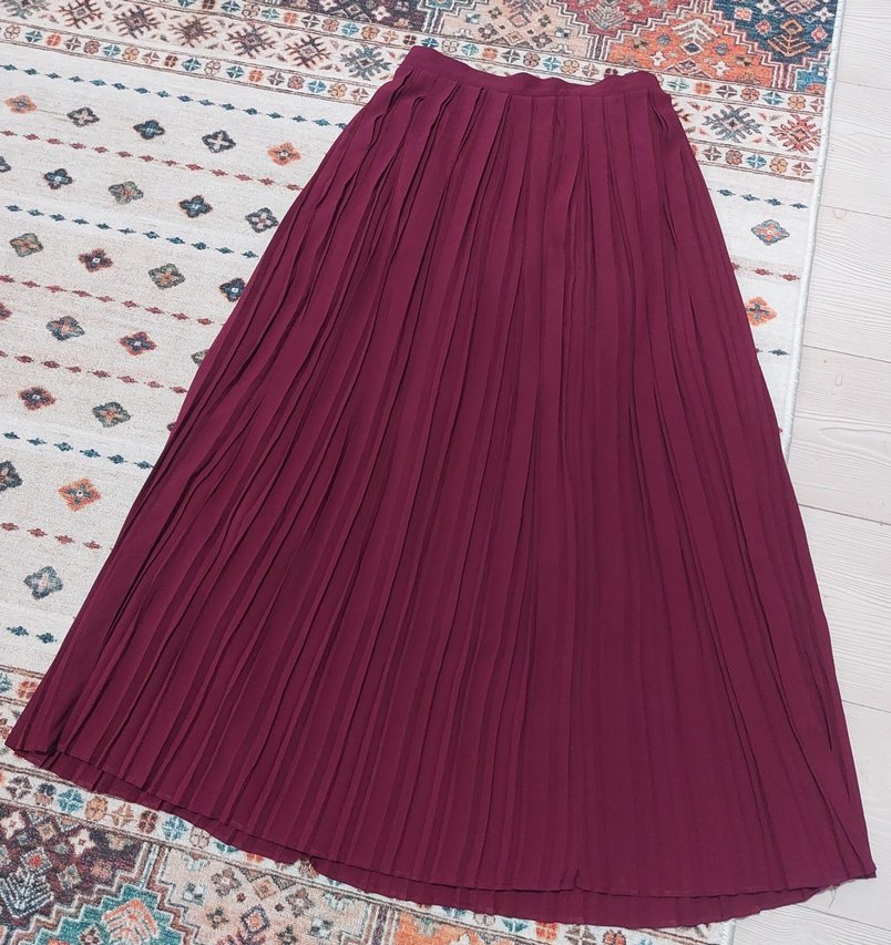 Bordo renkte, piliseli ve bol kesim uzun etek. Sentetik kumaştan üretilmiş, bohem tarzına uygun, günlük kullanıma ideal.