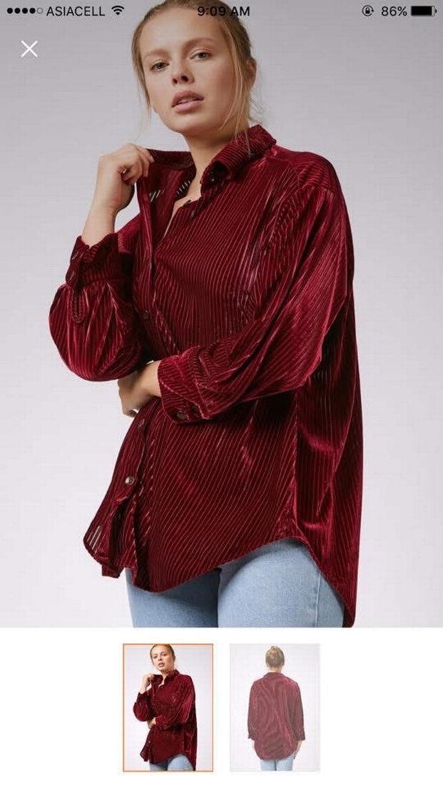 Bordo renkli, piliseli detaylı ve V yaka kadın gömleği. Bol kesim, uzun kollu ve parlak sentetik kumaştan, günlük sokak tarzına uygun.
