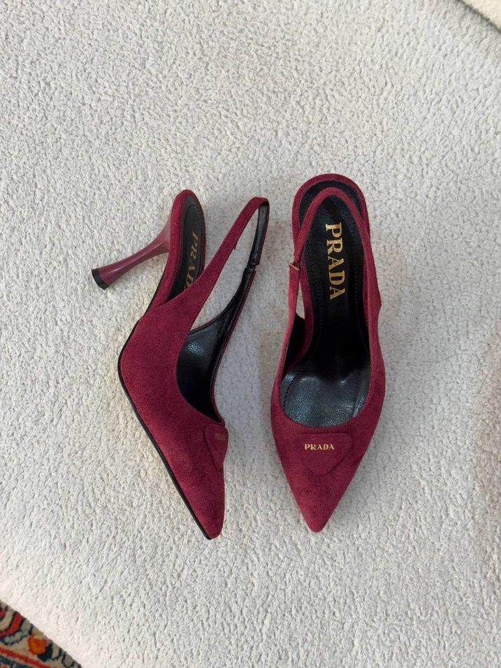 Bordo süet Prada stiletto kadın ayakkabı, kürk detaylı ve desenli. Romantik akşamlar için klasik Paris tarzını yansıtır. 36_ 40 no siyah bordo taba
