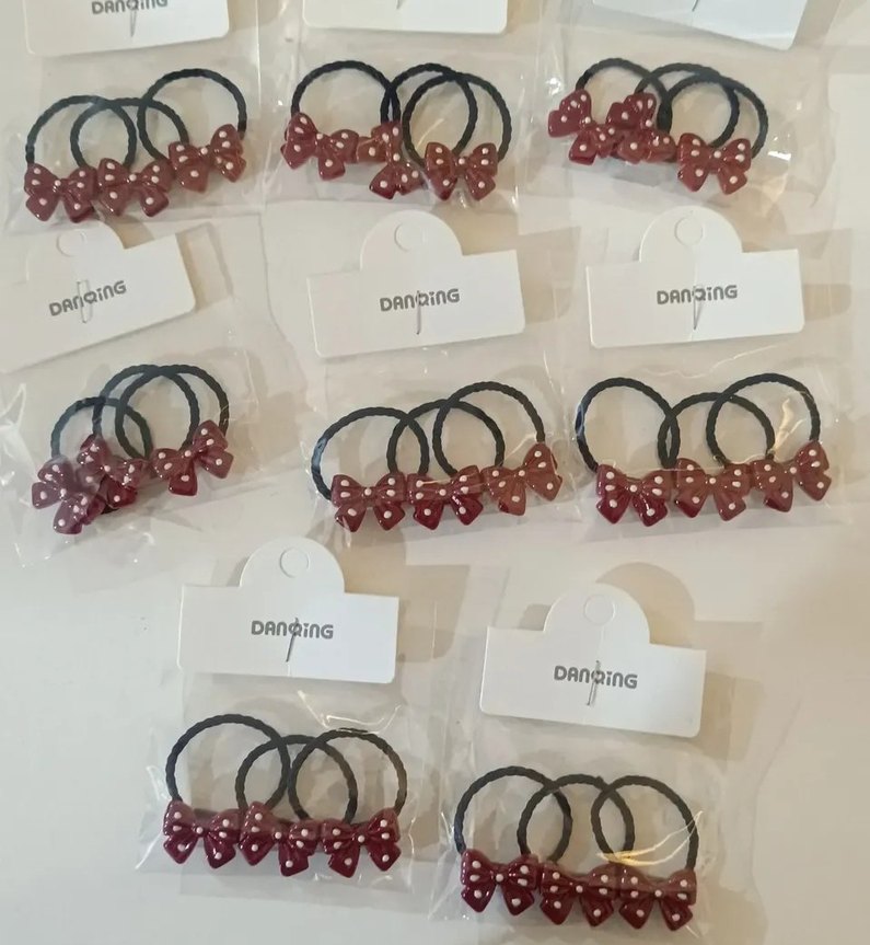 Bordo renkli, puantiyeli fiyonk detaylı, elastik çocuk saç tokaları. Bohem tarzda, çoklu paket halinde sunulur.