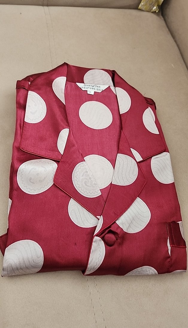 Bordo Puantiyeli ipekSaten Pijama Takımı