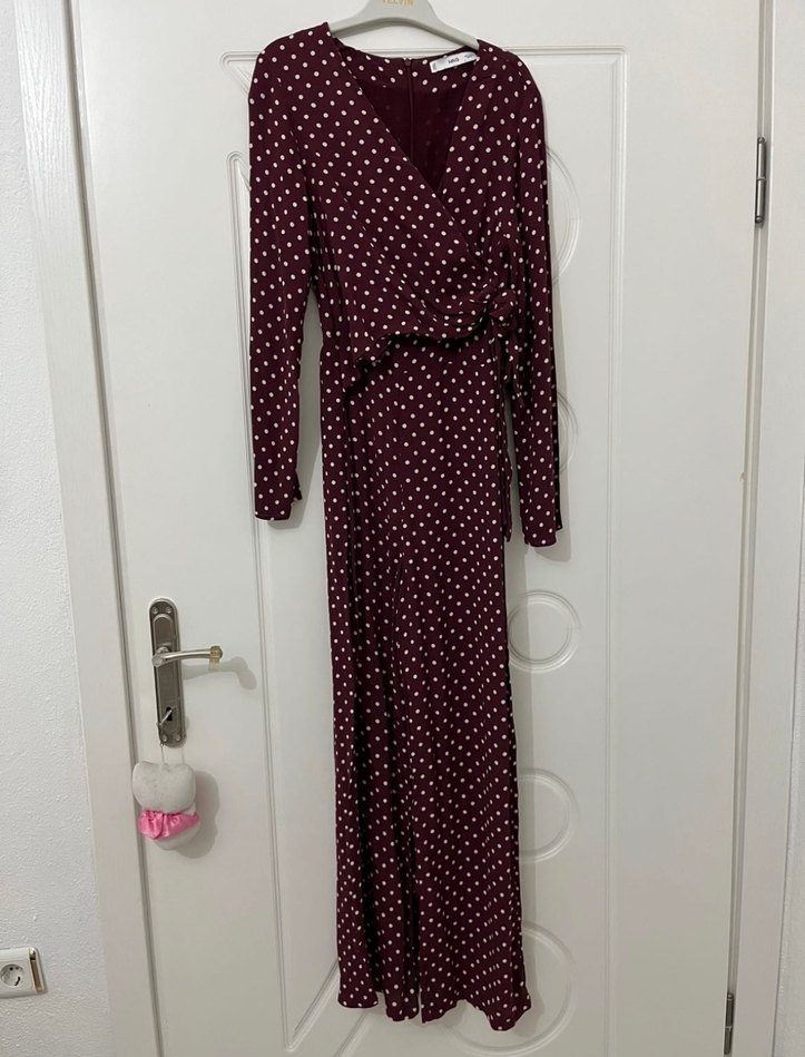 Bordo Puantiyeli Uzun Drapeli Tulum