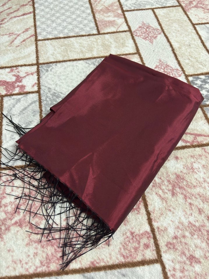Bordo renkte, sentetik kumaştan yapılmış kadın şalı, püskül detaylarıyla dikkat çeker. Moda ve avangart tarz için uygundur.