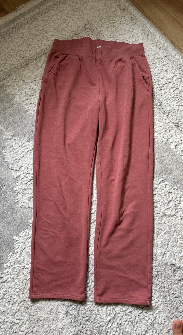 Bordo renkli, rahat kesim ve normal midi boyda, yumuşak sentetik kumaştan yapılmış kadın eşofman altı. Günlük kullanım için şık ve rahat.