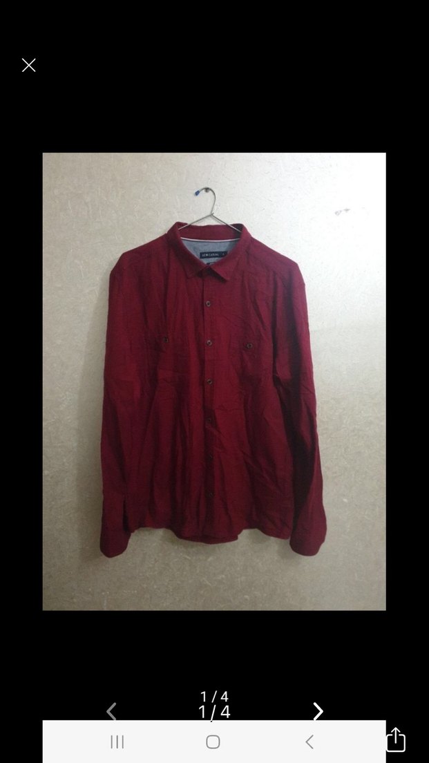 Bordo renkte, keten kumaştan yapılmış, uzun kollu, yakalı ve düğmeli erkek gömleği. Rahat kesimi ve normal boyu ile gündelik sokak tarzına uygundur.