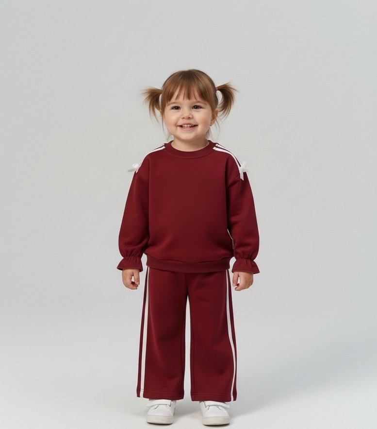 Bordo Rahat Kesim Kız Çocuk Eşofman Takımı
