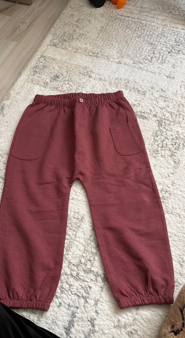 Bordo renk, rahat kesim kız pantolonu, yumuşak ve sıcak kumaş ile elastik bel bandına sahiptir. Düz, normcore tarzda, ön ceplerle sade ve şık görünüm sunar.