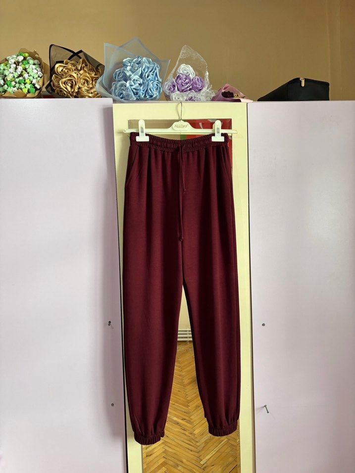 Bordo renkli, rahat kesim ve midi boyda, yumuşak ve sıcak kumaştan kadın eşofman altı. Günlük rahat sokak stili için ideal. Defosu yok hiç kullanılmadı