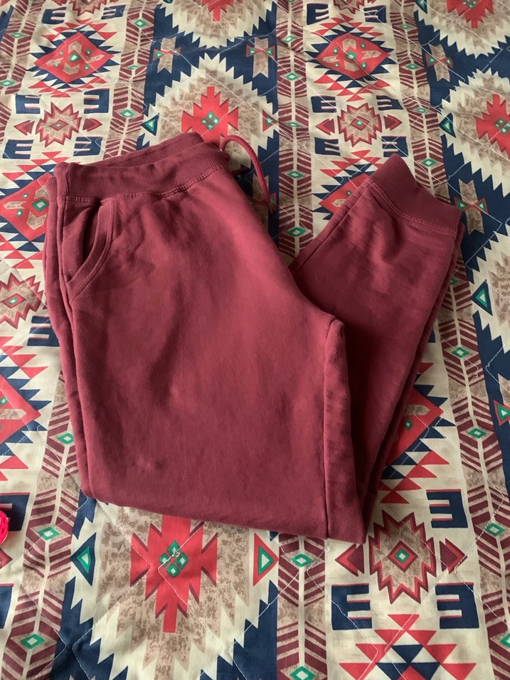 Bordo renkli, bol kesim kadın eşofman, normal midi boyda Yumuşak kumaştan üretilmiş, günlük rahatlık sağlar.