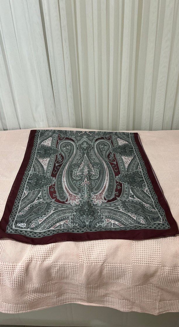 Bordo renginde, dökümlü dokuma kumaştan kadın şal. Bohem tarzı desenlerle retro ve klasik unsurlar bir arada. Kenarları bordo rengindedir kullanmadığım için satıyorum çok rahat bir kumaşı var kayma yapmıyor  görselde görüldüğü gibi sadece beyaz bir ip çekilmiştir