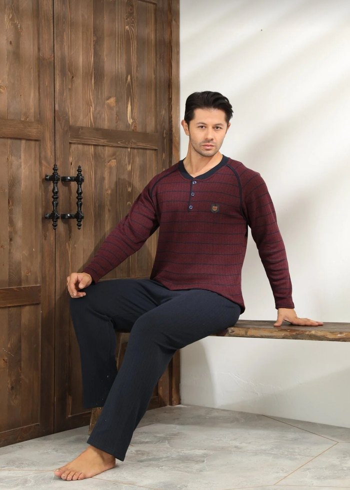 Kışlık İnterlok dokuma kumaş UzunKollu erkek pijama takımı. Dokuma kumaşı sayesinde sıcak tutar. 3 düğmelidir. Yumuşak kumaştır. Regular kalıp olduğu için rahat giyilip çıkarılabilir. Uzun ömürlü kullanım için yıkama talimatlarına uyulması tavsiye edilir. Stok bilgisi için bizimle iletişime geçebilirsiniz. #erkek #erkekevgiyim #erkekpijama #erkekpijamatakımı #erkekiçgiyim