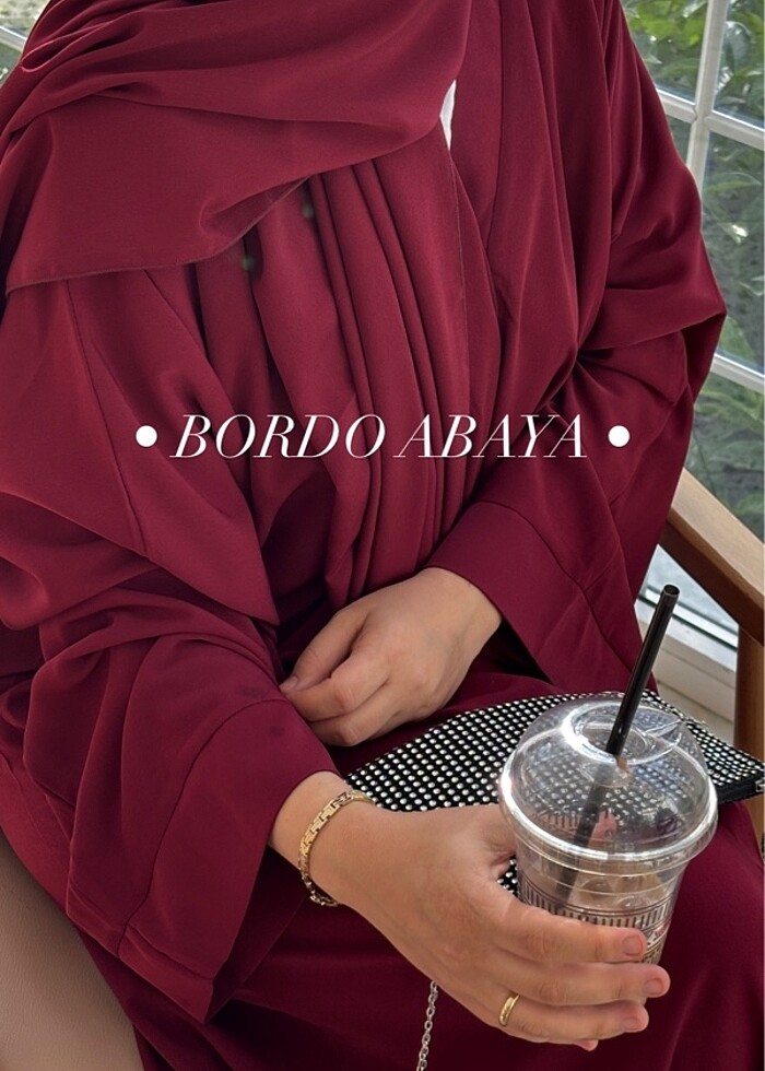 Bordo renk düz kesim abaya